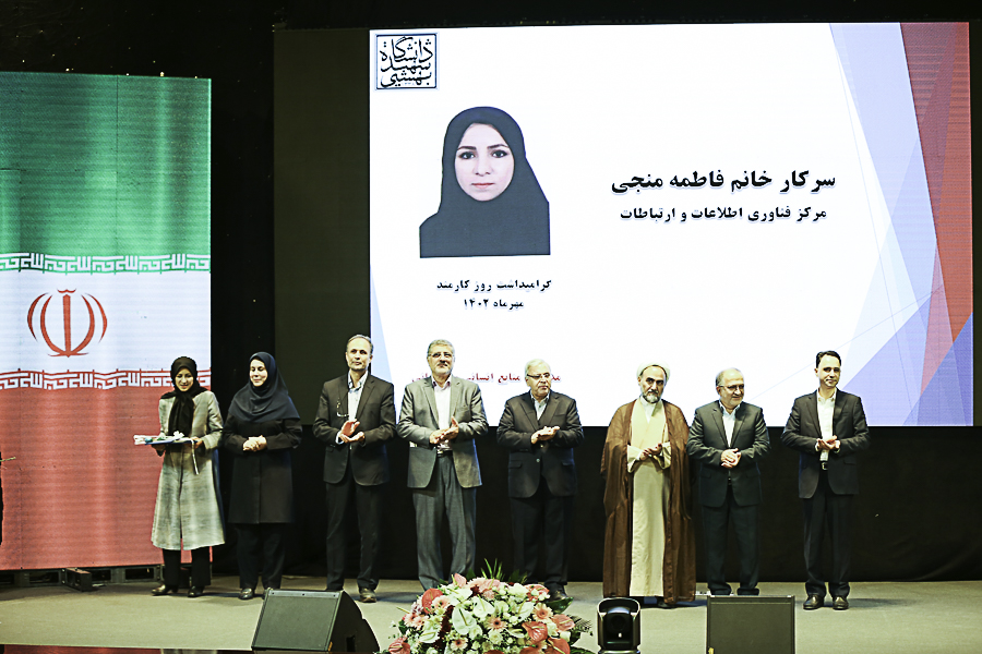 سرکارخانم مهندس فاطمه منجی، رئیس واحد سامانههای آموزشی، پژوهشی و دانشجویی، به عنوان کارمند نمونه مرکز فناوری اطلاعات و ارتباطات در سال 1402 معرفی و از ایشان تقدیر به عمل آمد. مرکز فناوری اطلاعات و ارتباطات، ضمن تبریک و تهنیت، آرزوی توفیق و موفقیت روزافزون ایشان در انجام مسئولیتها و وظایفشان را دارد.