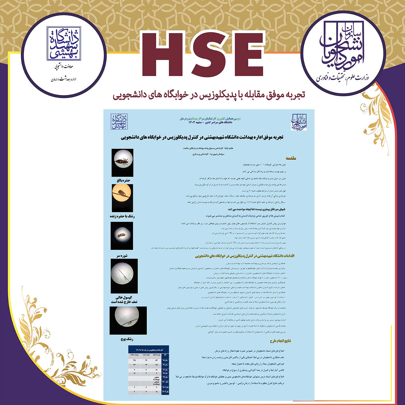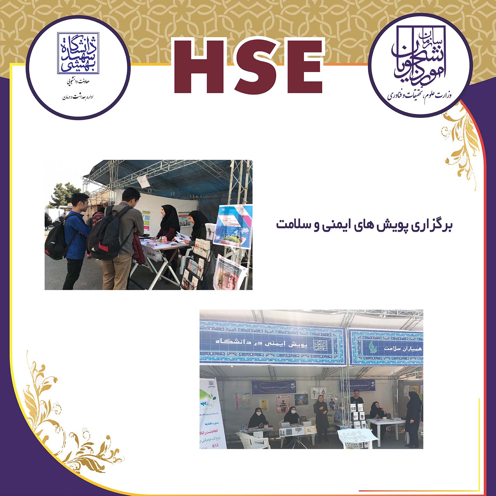ارائه پوستر اقدامات اداره بهداشت و درمان در حوزه سلامت، ایمنی و محیط زیست (HSE) در نهمین نمایشگاه پدافند غیرعامل سال 1404،  غرفه وزارت عتف