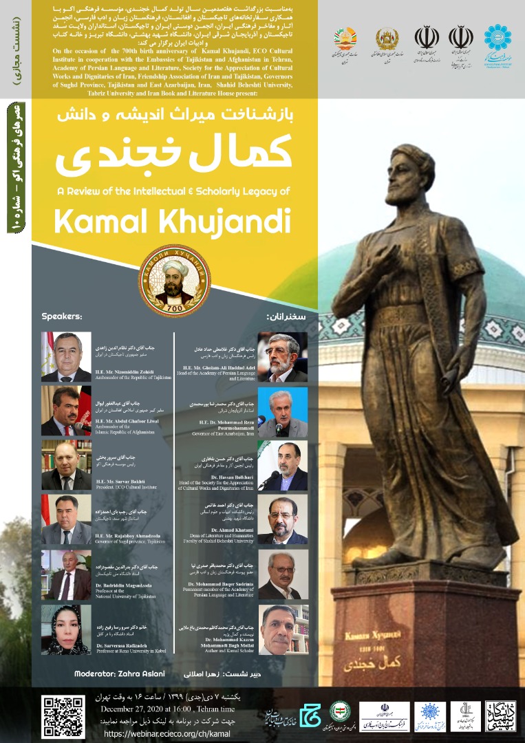برگزاری نشست بازشناخت میراث اندیشه و دانش کمال خجندی 9045 بازدید print share 07 دی به مناسبت بزرگداشت هفتصدمين سال تولد کمال خجندی، معروف به شیخ کمال از عارفان و شاعران پارسیگوی قرن هشتم هجری،...
